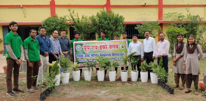 शासकीय उच्चतर माध्यमिक विद्यालय तिलईरवार में प्रधानमंत्री श्री नरेंद्र मोदी जी द्वारा चलाए गए अभियान “एक पेड़ मां के नाम” से प्रेरित होकर इस संस्था में भी पौधारोपण का कार्य किया गया । विद्यालय के यूथ एवं इको क्लब प्रभारी शिक्षक व्याख्याता थंगेश्वर कुमार साहू ने बताया कि इस कार्यक्रम का मूल उद्देश्य छात्र-छात्राओं को प्रकृति से जोड़ना और पर्यावरण के महत्व के बारे में समझाना, पेड़ पौधे हमारे स्वस्थ्य जीवन में कितना महत्वपूर्ण है । पेड़ पौधे वातावरण को स्वच्छ रखने में कितना महत्वपूर्ण योगदान देते हैं , इन सभी के बारे में बहुत ही सारगर्भित ढंग से बताया गया । विद्यालय में छात्र-छात्राओं की सहभागिता से लगभग 10 से 12 गमलो में पौधारोपण किया गया । और लगभग 16 पौधे फलदार,छायादार पौधों का विद्यालय परिसर में रोपण किया गया । प्राचार्य महोदय श्री अशीम कुमार यदु जी ने बताया कि यह पौधारोपण का कार्य छात्र-छात्राओं को पर्यावरण के प्रति जागरूक करने और उन्हें प्रकृति से जोड़ने का एक शानदार तरीका है । आज विद्यालय परिसर में लगभग 250 से भी अधिक फूलदार ,फलदार ,छायादार एवं औषधि पौधे सुरक्षित है जो विद्यालय में हरियाली का प्रतीक बना हुआ है। साथ ही साथ सभी बच्चों को अपने-अपने घरों में भी एक पेड़ मां के नाम सभी लगाएं, अपने गांव में भी पौधारोपण कर और उसकी देखभाल करें । क्योंकि पेड़ है तो कल है । और अंत में सभी छात्र-छात्राओं को एवं स्टॉफ सदस्यों को सघन वृक्षारोपण कार्य के लिए उसकी देखभाल के लिए शपथ दिलाया गया । इस कार्यक्रम में प्राचार्य महोदय श्री अशीम कुमार यदु, थंगेश्वर कुमार साहू, जानकी वल्लभ तंबोली ,राजेश कुमार नेताम,जितेंद्र कुमार कश्यप, नोहर दास लीलहारे , पालक राम वर्मा हरिचंद यादव, अशीष मसीह, दानेश्वर कुमार साहू एवं छात्र-छात्राओं की सहभागिता रही । इस कार्यक्रम का संचालन व्याख्याता थंगेश्वर कुमार साहू जी के द्वारा किया गया । यह कार्यक्रम प्राचार्य महोदय श्री अशीम कुमार यदु जी के मार्गदर्शन में संपन्न हुआ ।