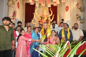 विधानसभा अध्यक्ष डॉ रमन सिंह ने भगवान गणपति की आरती उतारी एवं चाय बिस्किट प्रसाद वितरण का किया शुभारंभ
