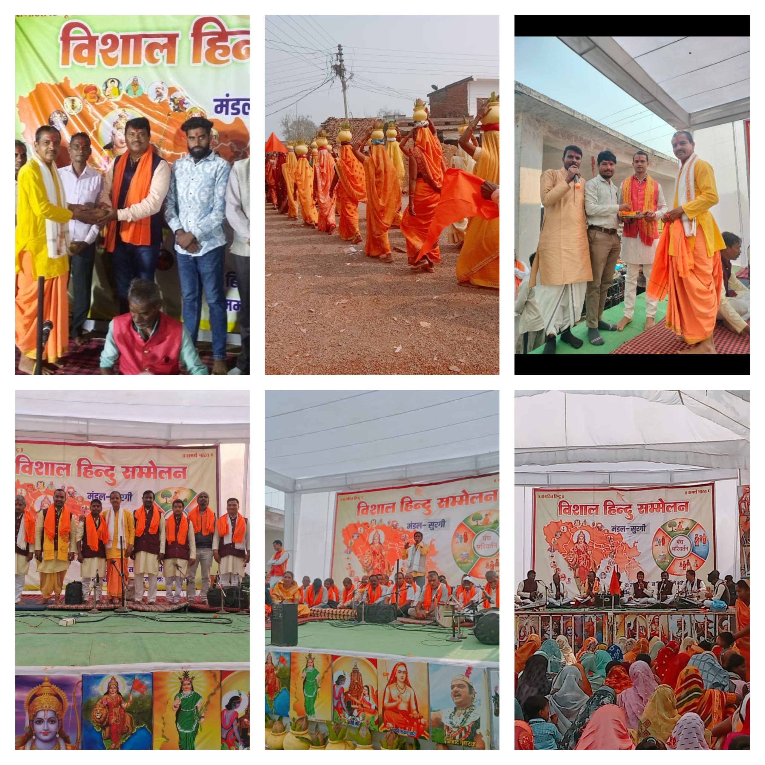 राजनांदगांव – ब्लाक के ग्राम सुरगी में शनिवार बाजार चौक में भव्य हिंदू सम्मेलन का आयोजन किया गया। इस अवसर पर ग्राम में कलश शोभा यात्रा रामसत्ता भजन के साथ निकाली गई। इसमें स्थानीय एवं आसपास से पहुंचे ग्रामीण महिलाओं एवं बच्चों ने बढ़-चढ़ कर हिस्सा लिया। गली भ्रमण के बाद स्थानीय व आसपास से आये विशिष्ट, वरिष्ठ गणमान्य नागरिकों को गमछा भेंटकर सम्मानित किया गया। तत्पश्चात लोक कला एवं संस्कृति से जुड़े विविध कार्यक्रम, रामायण ,जस झांकी,व फाग गीत का आयोजत किया गया। लोगों ने मानस गान, जसगीत झांकी, फाग गीत एवं अन्य लोक गीतों का आनंद उठाया।