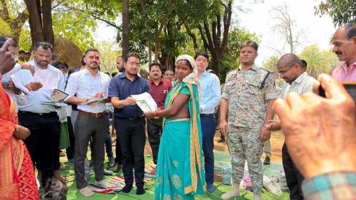 जगदलपुर 16 अप्रैल 2026/ बस्तर जिले के लोहंडीगुड़ा विकासखंड के सुदूर अंचल स्थित पॉवेल गाँव में कलेक्टर श्री आकाश छिकारा ने गुरुवार को चैपाल लगाकर ग्रामीणों के साथ संवाद किया। दुर्गम पहाड़ी क्षेत्र में स्थित इस गाँव तक पहुंचने के लिए कलेक्टर श्री छिकारा, पुलिस अधीक्षक श्री शलभ सिन्हा, जिला पंचायत सीईओ श्री प्रतीक जैन ने दंतेवाड़ा जिले के बारसूर होकर पहुँचे।