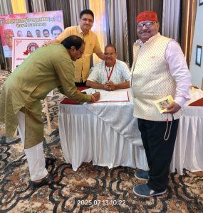 राजनांदगांव — अखिल भारतीय वैष्णव ब्राह्मण सेवासंघ मुम्बई का राष्ट्रीय कार्यकारिणी बैठक होटल बेबीलोन रायपुर में देशभर के वैष्णव पदाधिकारियों की उपस्थिति में संपन्न हुई। भगवान श्री लक्ष्मीनारायण जी की पूजा अर्चना पश्चात पिछले आय व्यय का ब्यौरा प्रस्तुत कर अधिवेशन में सर्वसम्मति से मुहर लगाकर सहमति से पारित किया गया। सामाजिक संगठन में सक्रियता लाकर एकजुटता बनाने राष्ट्रीय अध्यक्ष सहित पदाधिकारियों ने वैष्णव समाज के राष्ट्रीय उपाध्यक्ष लाल जे के वैष्णव का शाल श्रीफल मोमेंटो भेंटकर सम्मानित किया गया। समाज के भागवताचार्य , प्रतिभाशाली युवा युवती, चिकित्सा क्षेत्र,संगीत एवं साहित्य आदि क्षेत्र के वैष्णव जन का भी शाल श्रीफल मोमेंटो भेंटकर सम्मानित किया गया। छत्तीसगढ़ के रायपुर में पहली बार राष्ट्रीय कार्यकारिणी बैठक आयोजन में छुईखदान राजपरिवार के वैष्णव समाज के राष्ट्रीय उपाध्यक्ष लाल जे के वैष्णव ने राष्ट्रीय अध्यक्ष विष्णु दत्त जी , महासचिव ओ पी बैरागी , छत्तीसगढ़ प्रभारी प्रभुलाल बैरागी का आभार व्यक्त कर धन्यवाद ज्ञापित किया। इस अवसर पर पूर्व राष्ट्रीय अध्यक्ष यू के स्वामी , राष्ट्रीय उपाध्यक्ष योगेन्द्र महंत पूर्व मंत्री मध्यप्रदेश शासन , प्रदेश अध्यक्ष राकेश वैष्णव रिसदा , प्रदेश महासचिव रजनीश वैष्णव , महिला अध्यक्ष श्रीमती अंजना देवी वैष्णव छोटी रानी, युवा अध्यक्ष राघवेन्द्र वैष्णव , युवा महासचिव डॉक्टर सौरभ निर्वाणी , उपाध्यक्ष परमेश्वर वैष्णव, सुनील वैष्णव , महंत कार्तिक कृष्ण गोस्वामी जी वृन्दावन धाम , नारायण महराज निकुंज धाम, सुनील वैष्णव भोपाल , योगेन्द्र बैरागी , श्रीमती प्रज्ञा निर्वाणी, श्रीमती आशा वैष्णव , विद्या वैष्णव , नीलिमा मनोहर बैरागी, कमल बैरागी, गिरधर गोपाल निम्बावत , सुमन शर्मा, पूर्णिमा वैष्णव बस्तर , गोपाल लाल वैष्णव मीडिया प्रभारी जयपुर, हीरालाल वैष्णव जोधपुर ‌सहित देशभर से आए वैष्णव जन उपस्थित रहे । कार्यक्रम संचालन डॉ सौरभ निर्वाणी एवं आभार प्रदर्शन लाल जे के वैष्णव ने किया।