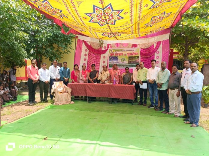 हायर सेकेंडरी विद्यालय तिलईरवार में जल संरक्षण एवं वृक्षारोपण कार्यक्रम में सम्मिलित हुई पद्मश्री श्रीमती फूलबासन बाई यादव