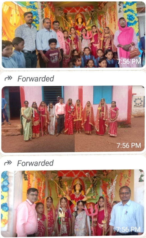 साल्हेवारा—शारदीय नवरात्रि के पांचवे दिन वनांचल क्षेत्र के शासकीय पूर्व माध्यमिक शाला आमगांव घाट के नवाचारी शिक्षक देवकरण सेन के मार्गदर्शन में विद्यार्थियों ने नवरात्र पर्व के पंचमी को नौ दुर्गा झांकी शोभायात्रा निकाली जिसमे कक्षा 6 से 8 में अध्ययन करने वाले छात्राओं ने माता दुर्गा के अलग अलग रूपों में नजर आए। नौ दुर्गा के शोभायात्रा मिडिल स्कूल भवन से आरंभ होकर गांव के मुख्य मार्ग से होती हुई गांव के शीतला मंदिर,दुर्गा मंदिर व ग्राम दुर्गा उत्सव समिति द्वारा स्थापित की गई माता दुर्गा के पंडाल तक पहुंची जहां पहुंचने पर मंदिर के पुजारी के द्वारा सभी का तिलक लगाकर,पूजा अर्चना किया गया। बच्चों की शोभायात्रा जहां से भी गुजरती लोग माता की जयकारा लगाते नजर आए।इससे पहले शिक्षक देवकरण सेन ने नवरात्रि पर्व पर प्रकाश डालते हुए कहा की नवरात्र पर्व बुराई पर अच्छाई की जीत का प्रतीक है क्योंकि माता दुर्गा ने नौ दिनों तक महिषासुर नामक राक्षस से युद्ध किया था और दसवें दिन उनका वध किया था इसलिए इस तिथि को माता दुर्गा की नौ रूपों की पूजा की जाती है।शिक्षक के इस कार्य की गांव वालो ने सराहना ।मिडिल स्कूल के छात्राओं के द्वारा निकाली गई नौ दुर्गा शोभायात्रा का यह दूसरा वर्ष था अंत में मध्यान्ह भोजन समिति के संचालाक प्रीत राम ठाकरे के द्वारा सभी बच्चों को न्यौता भोज के रूप में केला, सेब,एवम भजिया खिलाया गया।कार्यक्रम को सफल बनाने में विद्यालय के सभी शिक्षको का योगदान रहा।