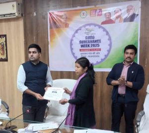 राजनांदगांव 20 दिसम्बर 2025। कलेक्टर श्री जितेन्द्र यादव ने आज कलेक्टोरेट सभाकक्ष में धान खरीदी कार्य में उत्कृष्ट प्रदर्शन करने वाले ग्रामीण कृषि विस्तार अधिकारियों, पटवारियों, समिति प्रबंधकों एवं डाटा एण्ट्री ऑपरेटरों को प्रशस्ति पत्र प्रदान कर सम्मानित किया। कलेक्टर ने ग्रामीण कृषि विस्तार अधिकारी छुरिया सुश्री दीक्षा नंदेश्वर, ग्रामीण कृषि विस्तार अधिकारी सीतागोटा श्री डिम्पल खापर्डे, ग्रामीण कृषि विस्तार अधिकारी कोकपुर श्री शैलेश साहू, पटवारी छुरिया श्री प्रशांत सिंह ठाकुर, पटवारी श्री घोघरे श्री आशीष साहू, पटवारी बम्हनी चारभाटा श्री सोनम कोकिला, पटवारी घुपसाल श्री डेविड भूआर्य, पटवारी श्री राहुल कसेट, पटवारी श्री हुकुम चंद महिलांग, समिति प्रबंधक जोब श्री धनसिंग, समिति प्रबंधक गहिराभेड़ी श्री बसंत, समिति प्रबंधक कुमर्दा श्री मनकलाल साहू, डाटा एण्ट्री ऑपरेटर धान उपार्जन केन्द्र बोरतालाव श्री भागचंद साहू, डाटा एण्ट्री ऑपरेटर धान उपार्जन केन्द्र गहिराभेंडी श्री रिमन्त कुमार साहू, डाटा एण्ट्री ऑपरेटर धान उपार्जन केन्द्र जोब श्री विनोद साहू को प्रशस्ति पत्र प्रदान कर सम्मानित किया।